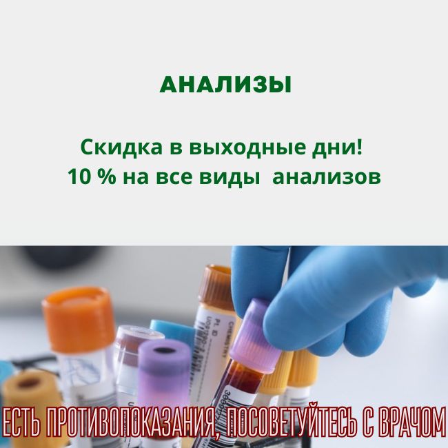 - Скидка 10% в субботу и воскресенье на все виды анализов.